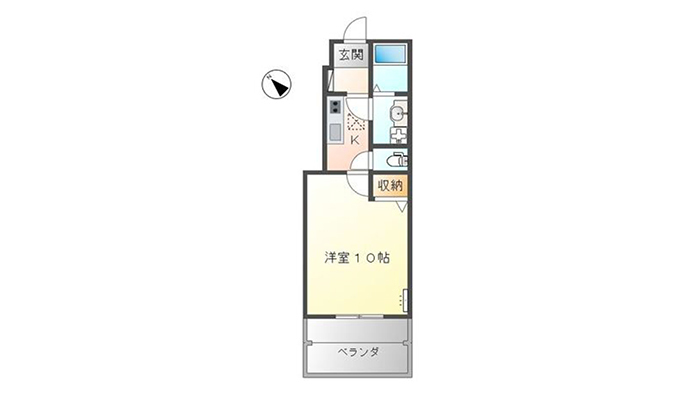 | 間取り | 1K(K、洋10、洗面脱衣室、バス・トイレ別) |