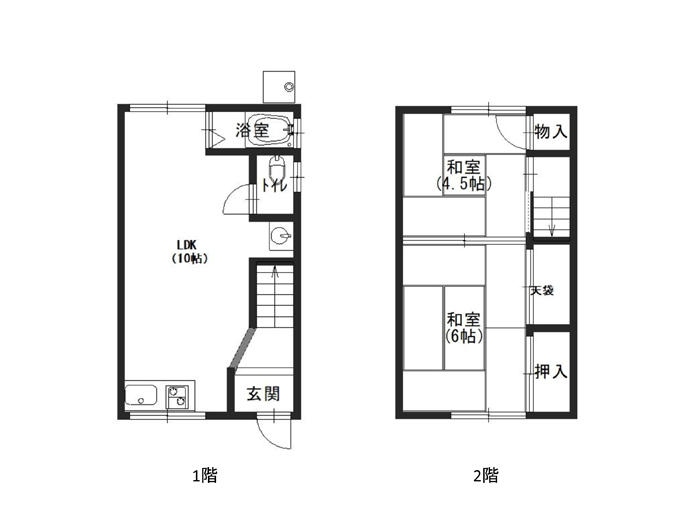 | 間取り | 2LDK(LDK10、和6、和4.5、洗面所、バス・トイレ別) |