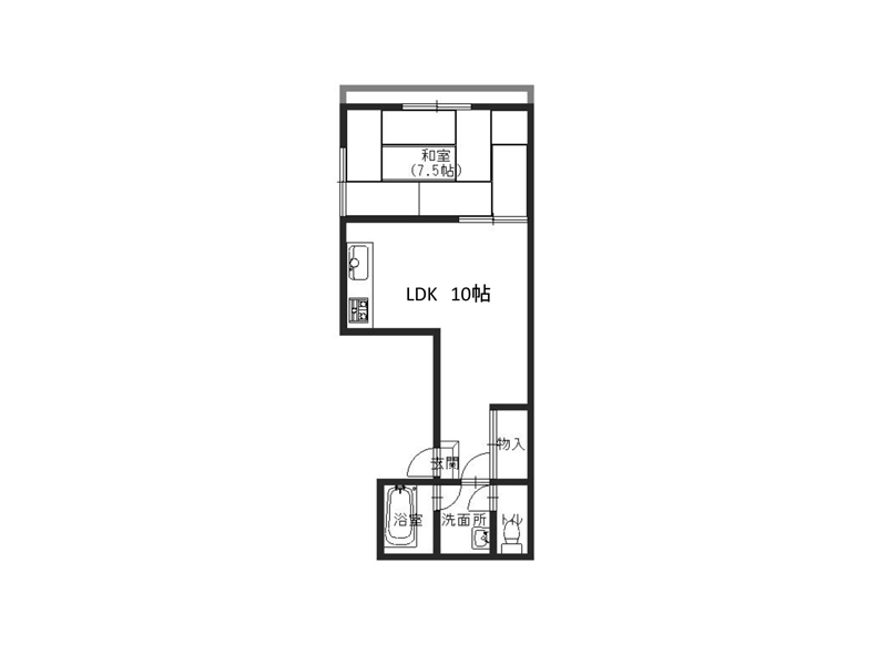 | 間取り | 1LDK(LDK10、和7.5、洗面脱衣所、バス・トイレ別) |