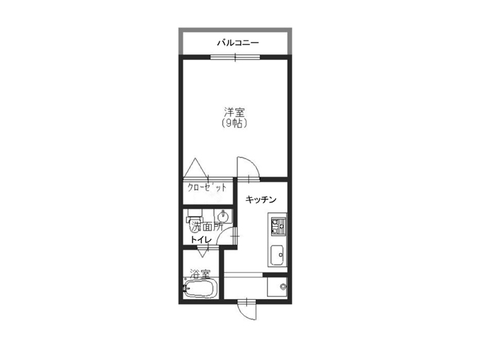 間取り | 1K(K、洋9、洗面脱衣室、バス・トイレ別) |
