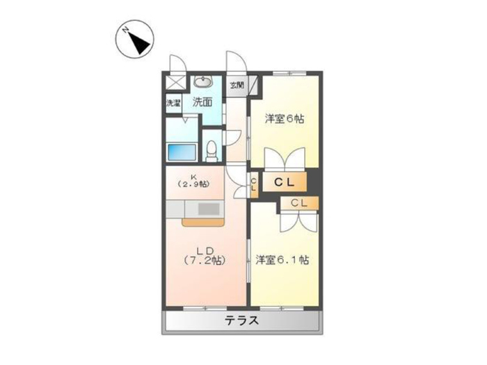 | 間取り | 2LDK(LDK10.1、洋6、洋6.1、洗面脱衣室、バス・トイレ別) |