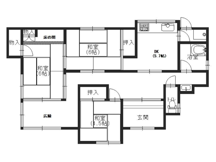 | 間取り | 3DK(DK5.7、和6、和6、和4.5、洗面所、バス・トイレ別) |