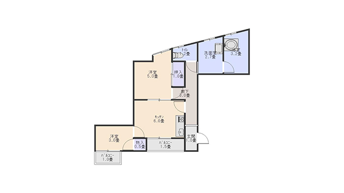 | 間取り | 2DK(DK6、和5.5、洋6、バス・トイレ別) |