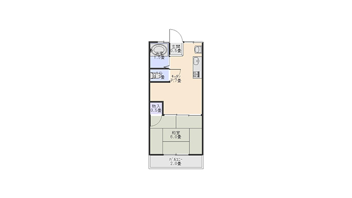 | 間取り | 1DK(DK7.7、和6、洗面所、バス・トイレ別) |