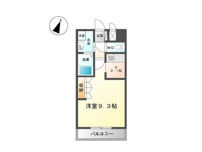 | 間取り | 1K(K2.1、洋9.3、洗面脱衣室、バス・トイレ別) |