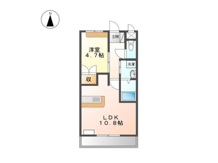 | 間取り | 1LDK(LDK10.8、洋4.7、洗面脱衣室、バス・トイレ別) |