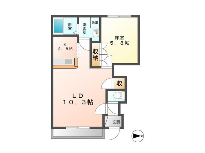 | 間取り | 1LDK(LDK13.1、洋5.8、洗面脱衣室、バス・トイレ別) |