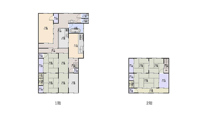| 建物延床面積 | 105.78㎡(31.99坪) 1階 59.50㎡ 2階 46.28㎡ ※増築部分未登記 |